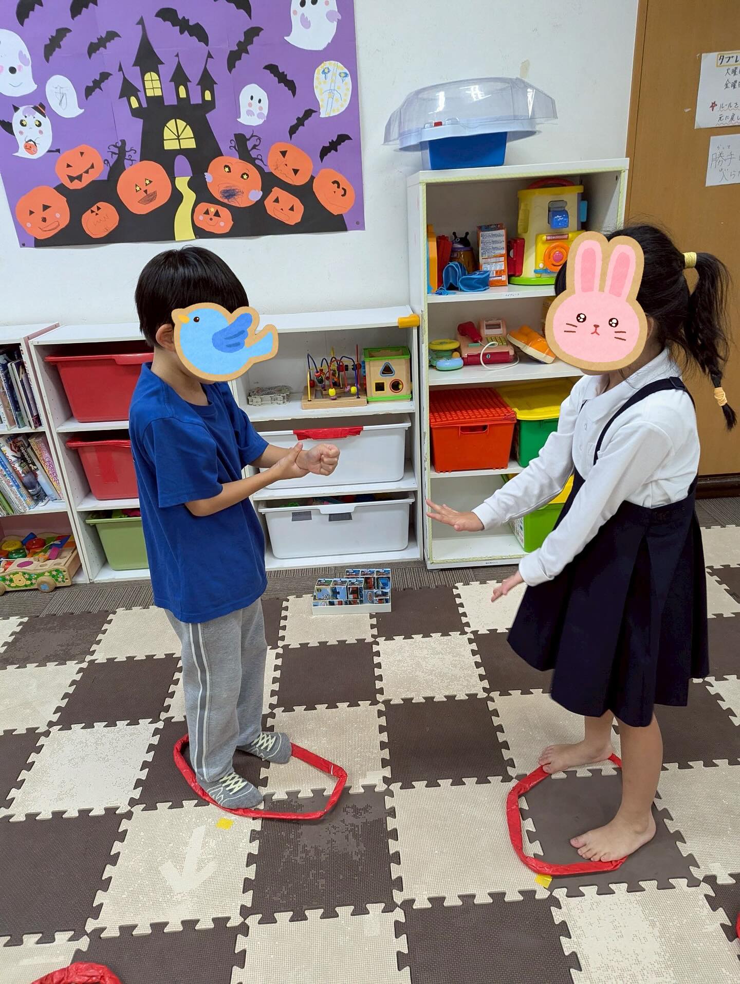 お友だちの仮装姿にお互いが興味を示して、普段あまり会話をしない子ども同士が仮装を通してコミュニケーションを取れたことは、とても良かったと思います(*^^*)